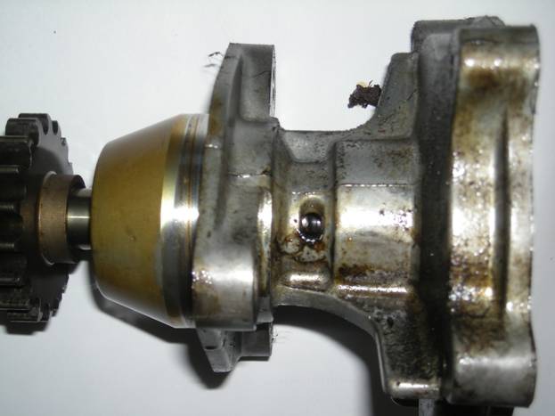 You can see some residue from the seep hole in the old water pump.