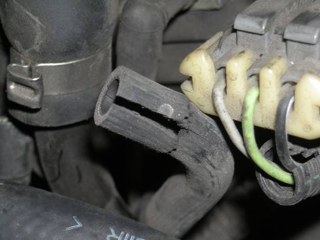 Here is the old, defective water outlet. This was probably the source of the main leak in the first place.