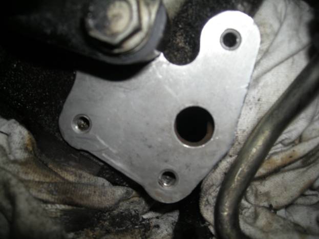 Here is the mounting bracket adapter exposed. I was able to loosen the three engine mount bolts without too much effort. However, there was not enough clearance between the wheel well and the front of the engine to remove the bolts!